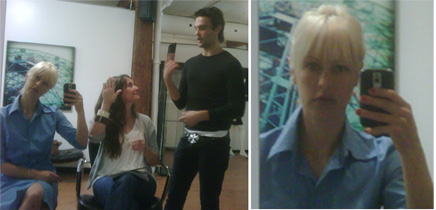 That’s Cassandra Warner on the left, Terressa Virchen on the right, and Rose in the background making it all happen. Catch Cassandra this fall at the Elgin Theatre performing in “Iphigenie en Tauride”, and Terressa is soon moving to NYC to make it big; break a leg, ladies! (and brave of you to let me blog your photo with half-done hair).