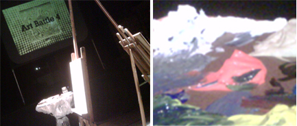 It’s competitive painting – two people from the crowd compete, the winner is chosen by audience voting and the loser’s painting is destroyed here at The Great Hall.