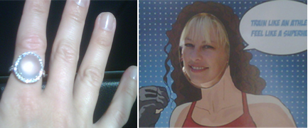 She always hands over her jewelry when I see her and let’s me wear it around; that one is white jade, popular in Asia but rare in Canada. And on the right, well, you see one of those things, you stick your face in it, and take your photo, that’s what you do.