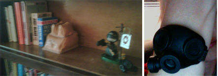 “Found myself my final home today.  Better protection from dust.  Correct fengsui.  Wondering if gas mask should be worn as a necklace”
