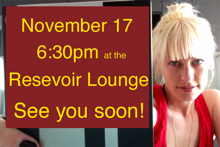 I’m throwing myself a Blog Party November 17 at the Resevoir Lounge, 6:30 – 10ish.