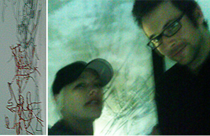 That’s Brad Hindson, architect and modest guy too, because it turns out his Nuit Blanche piece last year, A Dream of Pastures, was one of the whole festival’s highlights, but I only found that out by Googling the guy. On the left there is a side-profile shot of the mess of wires, except it’s not a mess at all.